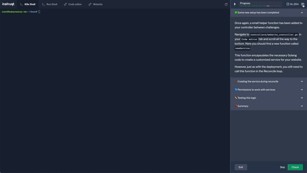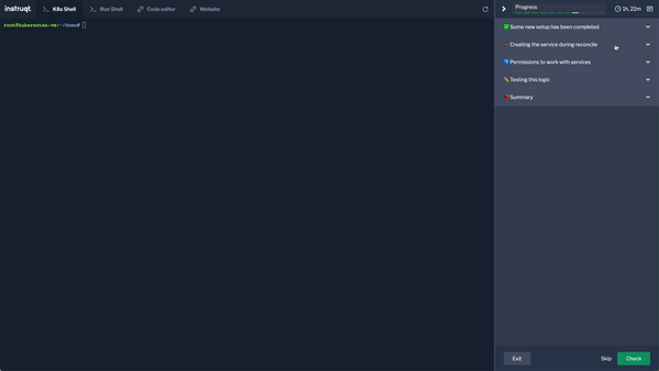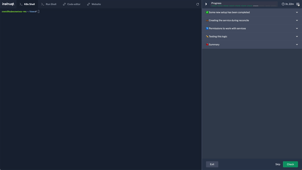 If at any time you want to refresh a tab, either because it is acting up or you want a fresh view, you can use `ctrl+r` to refresh the whole browser tab or the refresh button on the top left corner of each Instruqt working tab.